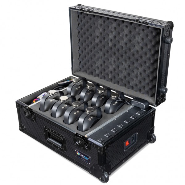 kit di 8 par led con dmx wireless, alimentati a batteria, con magnete EZMAGâ„¢ incluso e flight case per il trasporto e ricarica - ogni par ha una potenza di 5×12 Watt di tipo RGBWA-UV in grado di riprodurre tutti i colori possibili - utilizza il par a batteria fino a 9 ore con un singolo colore e ricarica in 2,5 ore l’unità - ogni par è dotato di ricevitore e trasmettitore wireless a 2,4GHZ, che permette di collegare i par fra di loro - è presente in confezione un telecomando IR per controllare le funzioni del par a distanza – grazie alla connessione Wi-Fi è possibile controllare i par attraverso il proprio dispositivo iOS in comodità – ogni unità può essere utilizzata come luce di tipo uplight o, grazie al supporto magnetico, può essere appesa in pochi istanti - utilizza il flight case incluso in confezione per trasportare e ricaricare gli 8 par in comoditÃ