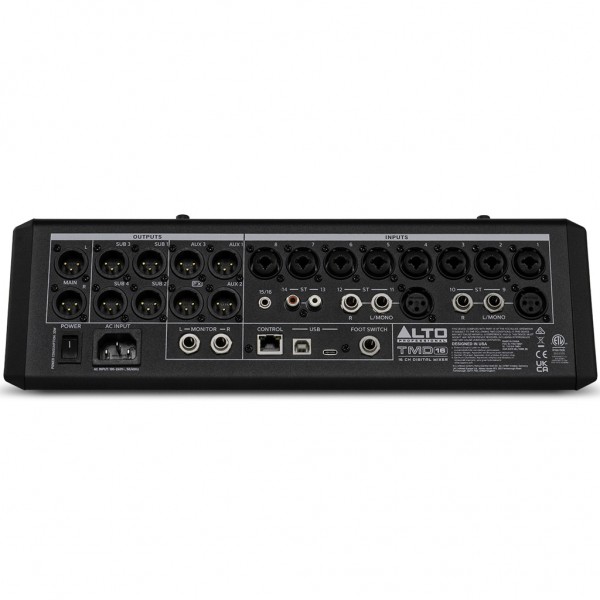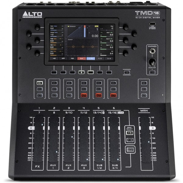 mixer digitale professionale progettato per offrire qualità sonora e controllo avanzato in un formato pratico e intuitivo, ideale per l’uso quotidiano in contesti live, studi di prova, locali o luoghi di culto – grazie ai 16 canali e un potente motore di mixaggio digitale, il TMD16 combina la versatilità della tecnologia moderna con l’immediatezza operativa dei mixer analogici tradizionali, offrendo un’esperienza d’uso fluida e senza compromessi. Grazie all’interfaccia fisica con fader capacitivi da 100 mm, encoder a pulsante, pulsanti retroilluminati e schermo a colori da 7”, ogni parametro è sempre sotto controllo senza dover navigare tra menu complessi – i preamplificatori microfonici digitali e le funzioni integrate per canale, come equalizzatore parametrico, compressore/limiter e effetti interni di livello studio (16 riverberi, delay, chorus e altro), assicurano un suono professionale in ogni situazione – progettato per semplificare anche le produzioni più articolate, il TMD16 consente routing avanzato, preset delle diverse scene, subgruppi e percorsi di segnale personalizzati – Bluetooth integrato e compatibilità USB plug & play per registrazioni stereo, streaming o riproduzione diretta da PC e Mac, con la possibilità di controllo remoto tramite app Alto Mix Control – robusto e affidabile, con chassis in metallo e componenti pensati per un uso intensivo, il TMD16 è una soluzione all-in-one per chi desidera un mixer compatto, portatile e pronto a garantire prestazioni di livello professionale senza la necessità di attrezzature aggiuntive o competenze tecniche avanzate – un mixer digitale di nuova generazione, pensato per rendere ogni performance semplice, potente e impeccabile