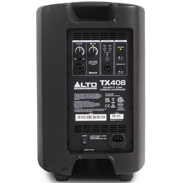 diffusore bi-amplificato in classe D a 2 vie – 175 W rms (125 W sui bassi e 50 W sugli alti) e 350 W di picco (250 W sui bassi e 100 W sugli alti) – 75–20.000 Hz – 114 dB dB Max SPL @ 1 m – copertura 90° x 60° – tweeter a compressione con diaframma in titanio da 1" – woofer da 8" – uscita per il collegamento a un secondo diffusore – mixer a 2 canali – 1 ingresso line + 1 ingresso mic con volume e limiter + 1 ingresso Bluetooth con volume linkabile in TWS a un secondo diffusore – EQ contour – pole socket per il posizionamento su stand – cabinet full grill in abs – dimensioni: 422 x 272 x 251 mm – peso 5.9 Kg