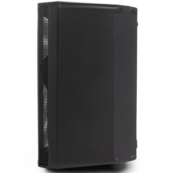 diffusore bi-amplificato in classe D a 2 vie – 175 W rms (125 W sui bassi e 50 W sugli alti) e 350 W di picco (250 W sui bassi e 100 W sugli alti) – 75–20.000 Hz – 117 dB dB Max SPL @ 1 m – copertura 90° x 60° – tweeter a compressione con diaframma in titanio da 1" – woofer da 10" – uscita per il collegamento a un secondo diffusore – mixer a 2 canali – 1 ingresso line + 1 ingresso mic con volume e limiter + 1 ingresso Bluetooth con volume linkabile in TWS a un secondo diffusore – EQ contour – pole socket per il posizionamento su stand – cabinet full grill in abs – dimensioni: 462 x 284 x 279 mm – peso 6.1 Kg