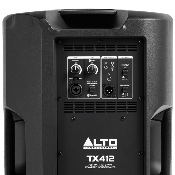 diffusore bi-amplificato in classe D a 2 vie – 350 W rms (250 W sui bassi e 100 W sugli alti) e 700 W di picco (500 W sui bassi e 200 W sugli alti) – 70–20.000 Hz – 120 dB dB Max SPL @ 1 m – copertura 90° x 60° – tweeter a compressione con diaframma in titanio da 1" – woofer da 12" – uscita per il collegamento a un secondo diffusore – mixer a 2 canali – 1 ingresso line + 1 ingresso mic con volume e limiter + 1 ingresso Bluetooth con volume linkabile in TWS a un secondo diffusore – EQ contour – pole socket per il posizionamento su stand – cabinet full grill in abs – dimensioni: 602 x 381 x 343 mm – peso 13.3 Kg